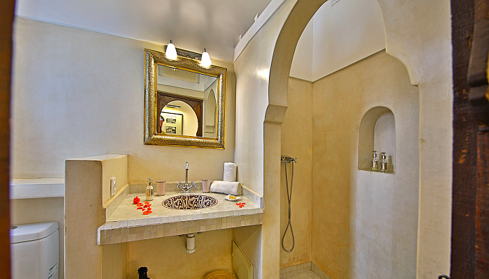 Une chambre de 17,5 m², située au rez-de-chaussée, avec un lit de 160 cm. La chambre est équipée d'une salle de douche, d'un système d'air conditionné indépendant et de wifi connecté à la fibre optique.